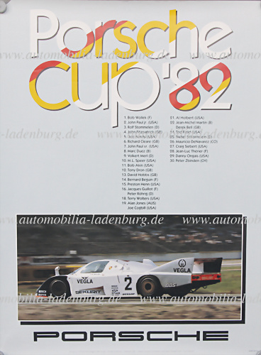 1982, Rennplakat, Porsche Cup '82, Entwurf Gruppe C, 102x77cm; linke Ecke fehlt, kleine Einrisse, sonst guter Zustand