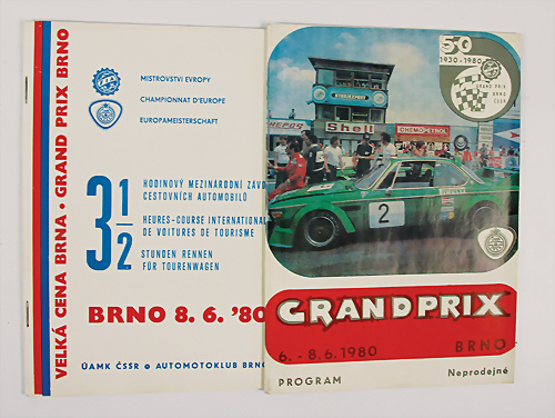 racing programme Grand Prix Brno 1980, touring cars European Championships, with list of starters (printed in the booklet) and tender documents, very good condition