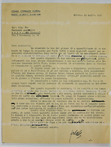 1947-1949, 38 writings- correspondence Fernando Assirelli, regarding Cisitalia Corse, settlements, internal company affairs, etc., many signatures, extremely interesting