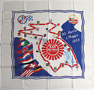 1955, original silk cloth with course of the road, 90x90cm, very good condition, rare