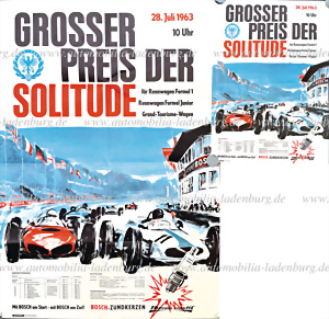 Konvolut zwei Veranstaltungsplakate "Großer Preis der Solitude 28.Juli.1963", 84x59cm, sowie 42x30cm, gefaltet, ansonsten guter Zustand