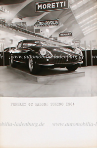 Original s/w Pressefoto Autosalon Turin 1964, Ferrari 275GTB (#06449), gestempelt "DuFoto", 12x17,5cm