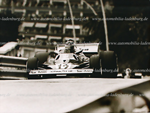 1974, original s/w Aufnahme Clay Regazzoni auf Ferrari 312B3, 13x18cm, gestempelt „Foto Kräling“