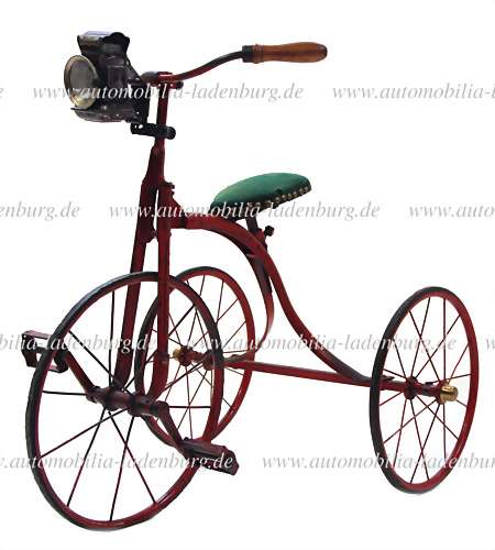 1900-1920, Kinderdreirad mit höhenverstellbarem Sattel, Vorderrad Pedalantrieb, Öllampe, Originallackierung, Lenkerhöhe 67 cm, Breite 80 cm, Länge 50 cm