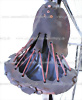 Frankreich 1886, Hochrad im originalerhaltenen Zustand mit Stahlrohrrahmen, blau-weiß-roter Linierung, Löffelbremse, Messingnabe, Vollgummireifen, original Sattel mit Satteltasche, Klingel, Hosenschutz, Vorderrad 54 Zoll