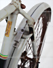 Original Bahnrennrad des deutschen Sechs Tage Meisters Wolfgang Schulze aus Berlin. Schulze war von 1961 bis 1978 Radprofi, startete 136-mal bei Six Days-Rennen, gewann zehnmal und wurde 1960 Deutscher Meister im Madison.