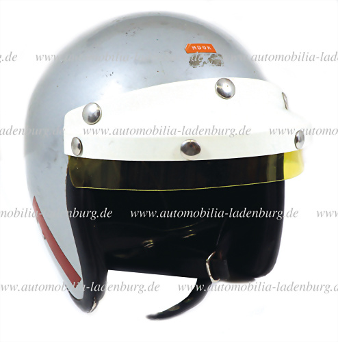 1966-1970, Fahrerhelm Hans Herrmann, unter anderem trug Hans Herrmann diesen Helm bei seinem Porsche Sieg in Le Mans 1970, mit Kampfspuren