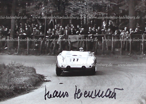 1000km Nürburgring 1962, Hans Herrmann und Graham Hill auf Porsche 718 WRS (#718-047), handsigniert, 13x18cm