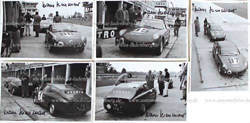 ADAC Noris Ring Rennen 1963, Konvolut 8 handsignierte original s/w Aufnahmen, Hans Herrmann Klassensieger auf Abarth Simca 1300, verschiedene Formate