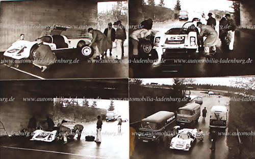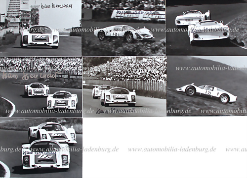 1000km Rennen Nürburgring 1966, Konvolut 7 handsignierte original s/w Aufnahmen, Herrmann / Glemser auf Porsche 906 E (#906-154), 13x18cm