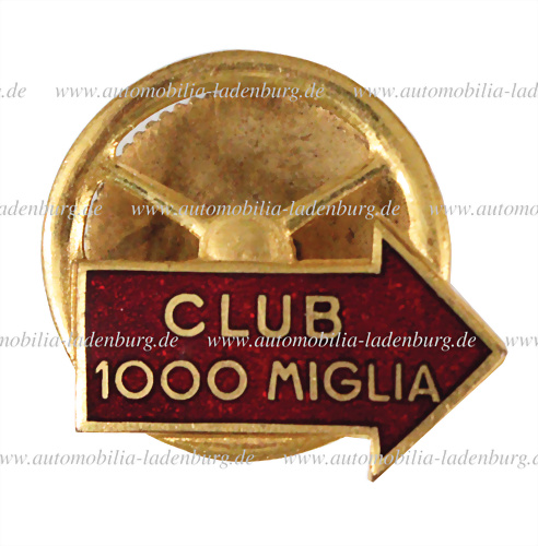 Ansteckbrosche „Club 1000 Miglia“, am Knopf mit Gravur „Hans Herrmann“, emailliert, Durchmesser 2cm