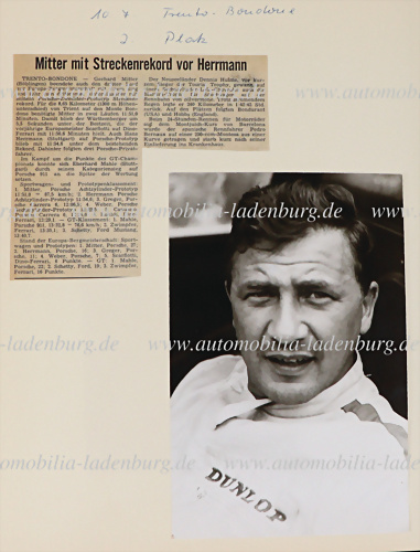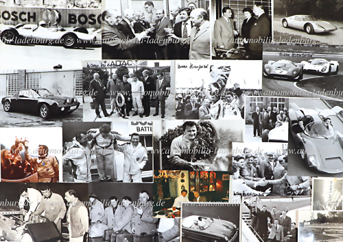Konvolut 23 original s/w und Farbaufnahmen, Hans Herrmann, darunter Herrmann zusammen mit Rolf Stommelen (Montlhery 1968), Porsche 904 Werksfoto, mit Gerhard Mitter im Porsche 906, mit Karl Kling auf dem Weg zur Carrera Panamericana 1953, mit Juan Manuel Fangio...versch. Formate