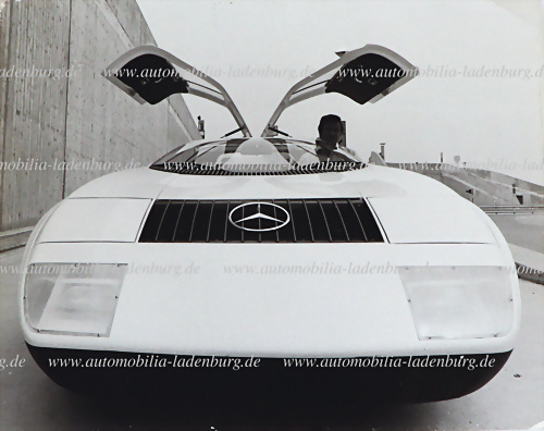 Original s/w Aufnahme, Hans Herrmann wohl bei Testfahrten mit dem Mercedes Benz C111, 21x29cm