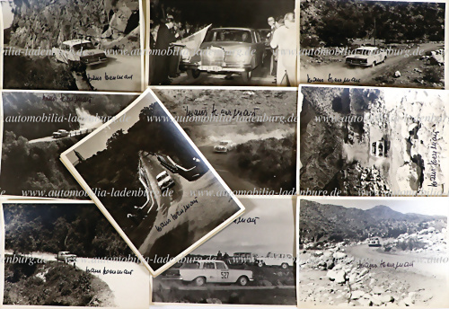 Gran Premio Argentina 1961, Konvolut 22 handsignierte original s/w Mercedes Benz Werksfotos Hans Herrmann und Rainer Günzler auf Mercedes Benz 220 SE, das Duo belegte den zweiten Platz im Gesamtklassement, 18x24cm