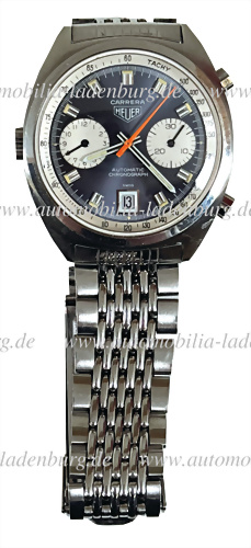 1970, Armbanduhr Heuer Carrera (1153), Automatik, Chronograph, Tachymeter, Hans Herrmann hatte diese Uhr bei zahlreichen Rennsportveranstaltungen getragen, inklusive original Box, Museumsqualität
