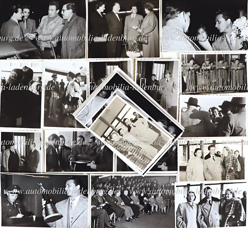 Konvolut 70 original s/w Aufnahmen, Hans Herrmann und Karl Kling am Flughafen Stuttgart, Abflug und Ankunft Carrera Panamericana Mexiko 1953, versch. Formate, auf den Fotos sind ebenfalls Hermann Lang, Richard von Frankenberg...zu sehen
