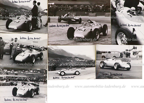 Konvolut 64 original s/w Aufnahmen, 50er-80er Jahre, Hans Herrmann bei verschiedenen Veranstaltungen, darunter Fotos mit Alfred Neubauer, Manfred von Brauchitsch, Hermann Lang, Hans Stuck, Hanns Geier, Harald Ertl, Huschke von Hanstein, Karl Kling...
