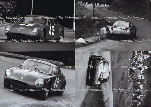 Freiburg Schauinsland 1964, Konvolut 4 original s/w Aufnahmen, Hans Herrmann auf Abarth 2000GT, (3. Platz in der Klasse), 13x18cm