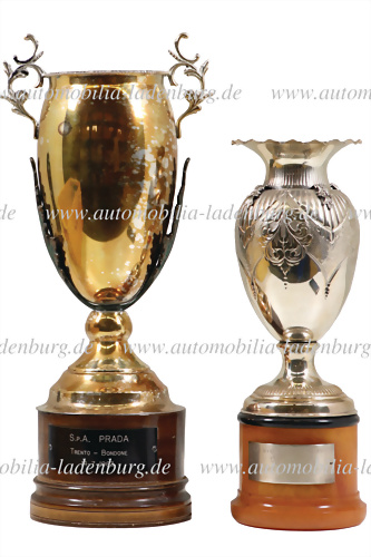 14.07.1963, Konvolut 2 Siegerpokale (Silber 800), „Trento Bondone Presidenza Giunta Provinciale Trento“, Höhe 32cm; „S.p.A. Prada Trento Bondone 14.07.1963“, Höhe 41,5cm, Hans Herrmann auf Abarth 2000SP, 2.Platz in der Klasse, sowie 2.Platz in der Gesamtwertung