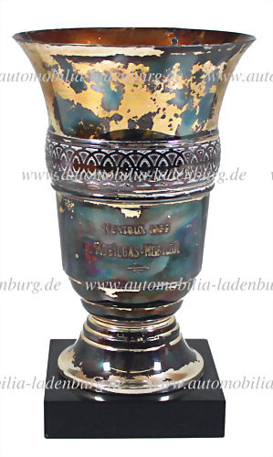 29.06.1958, Siegerpokal „Ventoux 1958 Mobilgas-Mobiloil“, Höhe 28cm, Hans Herrmann auf Borgward RS, 4. Platz in der Gesamtwertung hinter den 3 Porsche Rennwagen von Behra, von Trips und Barth