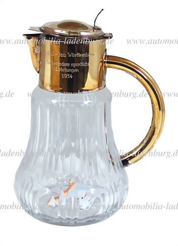 1954, Trophäe Kristallglaskaraffe „ADAC Gau Württemberg – Für besondere sportliche Leistungen 1954“, Höhe 31cm, Hans Herrmann auf Porsche und Mercedes Benz