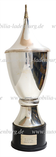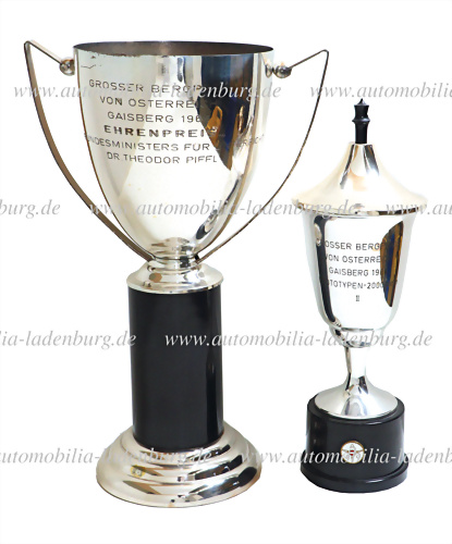 1957, Siegerpokal „Dem Sieger der Klasse 1500ccm Sportwagen – Großer Bergpreis von Österreich 1957 Gaisberg – Salzburg – Ehrenpreis der Fa. Porsche Konstr. KG Salzburg“, Höhe 32cm, Hans Herrmann auf Borgward RS, 1. Platz in der Klasse bis 1500ccm, 2. Platz in der Gesamtwertung