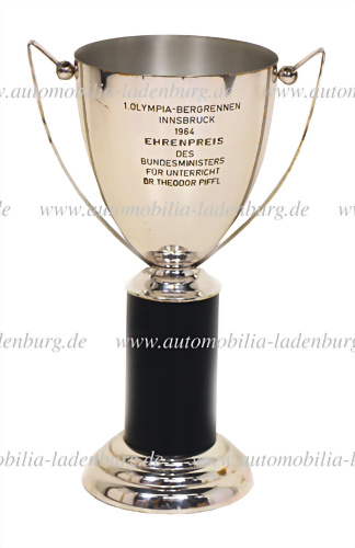 02.08.1964, Siegerpokal „1.Olympia-Bergrennen Innsbruck 1964 Ehrenpreis des Bundensminister für Unterricht Dr.Theodor Piffl“, Höhe 36,5cm, Hans Herrmann auf Abarth 2000GT 2.Platz in der Klasse, 2.Platz in der Gesamtwertung, bzw. Hans Herrmann auf Abarth 2000SP, 1.Platz in der Klasse, sowie 3.Platz... mehr