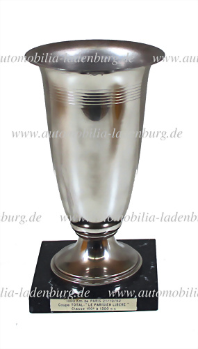 21.10.1962, Siegerpokal „1000KM de Paris 21.10.1962 Coupe Total – Le Parisien Libere Classe 1001 á 1300cc“, Höhe 28,5cm, Hans Herrmann / M.Bianchi auf Abarth Simca 1300, 1.Platz in der Klasse, sowie 9.Platz in der Gesamtwertung