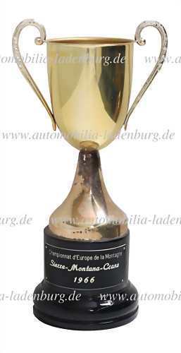10.07.1966, Siegerpokal Trento Bondone „Dono Presidenza Giunta Provinciale Trento“, Höhe 34,5cm, Hans Herrmann auf Porsche 910 (#910.001), belegte den 2.Platz in der Gesamtwertung, hinter Gerhard Mitter auf Porsche 906 (#906-010)