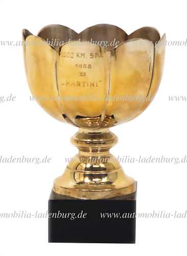 26.05.1968, Siegerpokal „1000KM SPA 1968 3. Martini“, Höhe 17cm, Hans Herrmann / Rolf Stommelen auf Porsche 908, 3.Platz in der Klasse, sowie 3.Platz in der Gesamtwertung