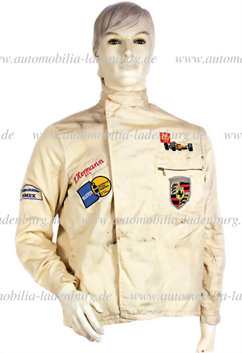 Ende 60er Jahre, Nomex (Rallye Bitter) Porsche Werksfahrer Rennanzug Jacke, mit Sponsoren Aufnähern von Shell und Bilstein, getragen bei zahlreichen Rennsport Veranstaltungen