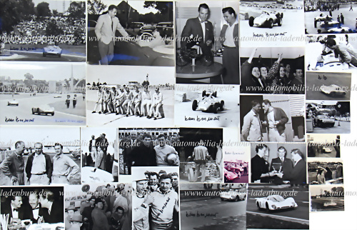 Konvolut 27 original Aufnahmen Hans Herrmann, darunter Aufnahmen mit Wolfgang Graf Berghe von Trips, Lucien Bianchi, bei Rennsportveranstaltungen auf Porsche, Abarth...etc. verschiedene Formate
