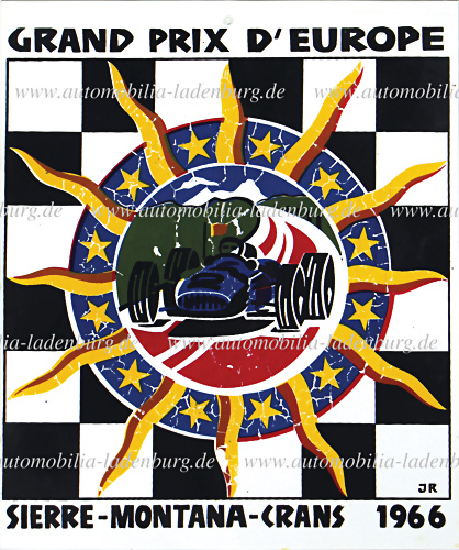 1966, Glasschild „Grand Prix d´Europe – Sierre – Montana – Crans“, 30x25cm, Hans Herrmann belegte den 3. Platz auf Porsche 910