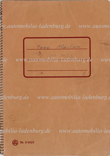 Mille Miglia 1953, Gebetsbuch von Hans Herrmann und Erwin Bauer, 43 Seiten, Herrmann/Bauer belegten den ersten Platz in ihrer Klasse auf Porsche 356 1500 Super, einzigartiges Zeitdokument
