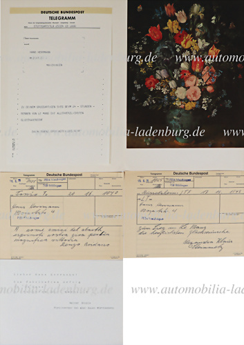 Konvolut 4 Glückwunschtelegramme „Le Mans Sieg 1970“ auf Porsche 917, darunter Telegramm der Daimler Benz AG (von Korff), Telegramm von Klaus Steinmetz...