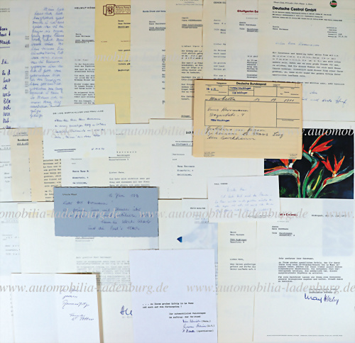 Le Mans 1970, Konvolut 39 Glückwunsch Schreiben zum Sieg in Le Mans, darunter Joakim Bonnier, Paul Frére, Paul Ernst Strähle, Fritz Walter, Dr. Fuhrmann, Stuttgarter Oberbürgermeister Dr. Klett...