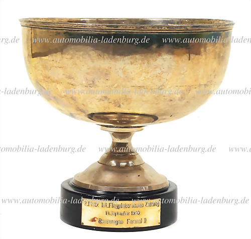 Siegerpokal „2.Platz Internationales Flugplatzrennen Zeltweg 18. September 1960 Rennwagen Formel II“, Hans Herrmann auf Porsche F2, Höhe inkl. Sockel 27cm