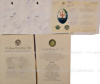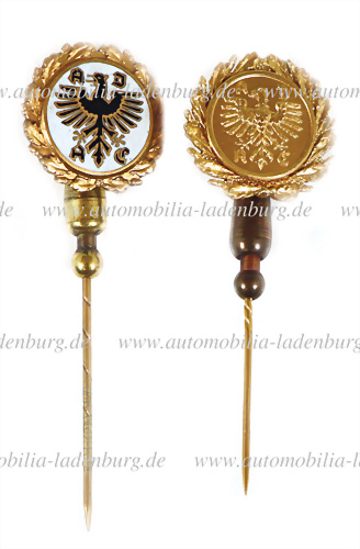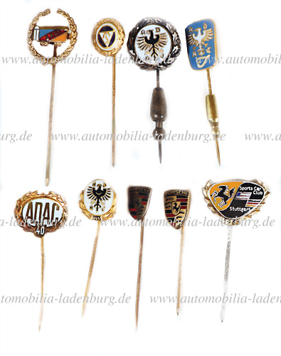 Konvolut 9 Anstecknadeln, Sports Car Club Stuttgart, ADAC Ehrennadel 1953, inkl. Urkunde Übergabe der Nadel, 21x16,5cm; ADAC Silber mit Lorbeer, Porsche, ADFAC 40 Jahre...