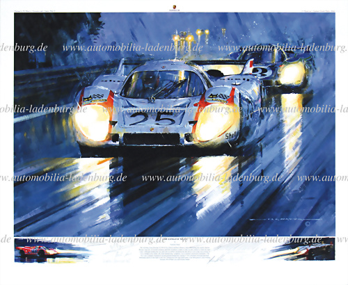 Handsignierter Kunstdruck „The Longest Night“ von Nicholas Watts, Motiv Elford / Ahrens auf Porsche 917LH im Zweikampf mit Larrousse / Kauhsen auf Porsche 917LH, Le Mans 1970, signiert von Nicholas Watts, Hans Herrmann, Rudi Lins, Kurt Ahrens, Willi Kauhsen, Gerard Larrousse, Vic Elford, Helmut... mehr