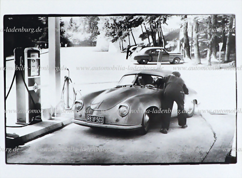 Original s/w Aufnahme Porsche 356 preA (split window), 24x31cm, gestempelt "Gerd Pfeiffer München"