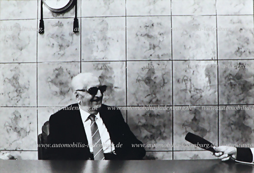 Original s/w Aufnahme 70er Jahre, Enzo Ferrari beim Interview, 20,5x30cm, gestempelt "Presse-Sports L´Equipe"