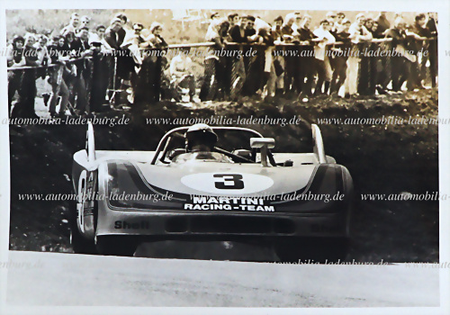 Original s/w Aufnahme / Werksfoto Porsche 908 Spyder 1000KM Nürburgring 1971, 13x18cm, gestempelt "Werkfoto Porsche"