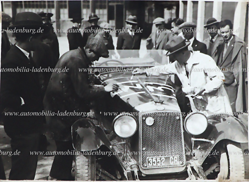 1930, original s/w Aufnahme Lavelli / Lotteri auf OM Tipo 665S Mille Miglia 1930, 18x24cm, gestempelt "Annibale Annibaletto Otica"