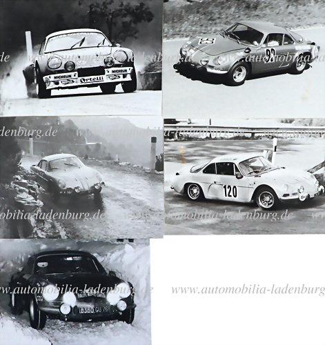 Konvolut 5tlg., darunter 4 original s/w Aufnahmen, sowie 1 Abzug neueren Datums, Renault Alpine, u.a. Rallye Monte Carlo 1971..., 13x18