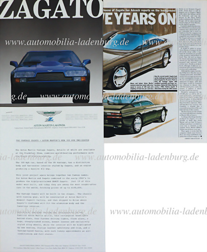 Konvolut darunter 1985, Pressemitteilung Aston Martin Vantage Zagato, 3 Seiten engl. Text, dazu Verkaufsprospekt Zagato, sowie Zeitungsausschnitt