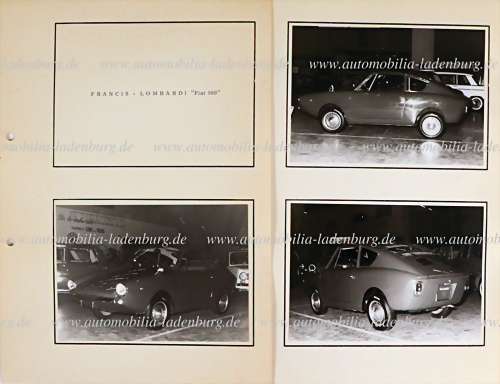 Konvolut 3 original s/w Aufnahmen Francis Lombardi Fiat 500, auf Messestand, je 10,5x14,5cm, aufgelebt auf Albumseiten