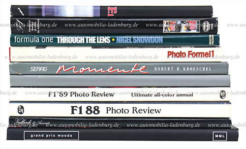 Bücherkonvolut 10 tlg, darunter z.B.: „F1 Photo Review” 1988 & 1999; „F1 Images” & „Lamia F1” von D. Amaduzzi; „F1`87 Uomini E Sfide” von Vallardi, etc. versch. Sprachen, weitere Titel entnehmen Sie bitte unserem Katalogbild