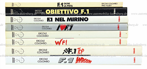 Bücherkonvolut 8tlg, Bände aus Ercole Colombos F1 Serie von 1985-1991, darunter z.B.: „F1 Oltre La Pista”; „Obiettivo F1”; „F.1 Nel Mirino”, etc, Ital./En Text, weitere Titel entnehmen Sie bitte unserem Katalogbild