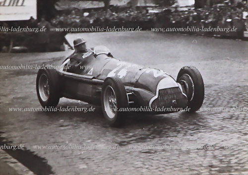 original s/w Aufnahme, Juan Manuel Fangio auf Alfa Romeo, Grand Prix Bern 1951, 10,5x15cm