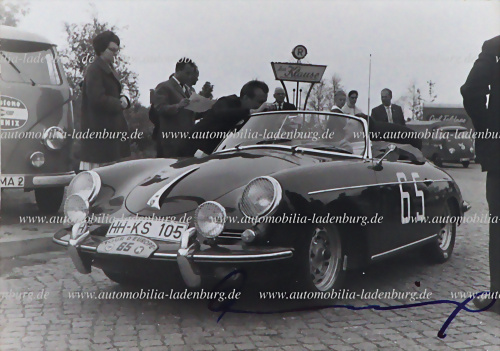 handsignierte, original s/w Aufnahme, Kurt Knuth Siebenlist auf Porsche Super 90, "Tour d´ Europe" 1962, 13x18cm